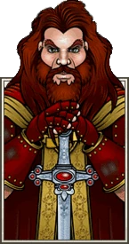 Godric Gryffindor's portrait depicts him as a tall, muscular man with a lion-like mane of wavy red hair and a beard to match. He had green eyes, peach-coloured skin and is often shown with his famous sword, with which he had great skill in wielding.